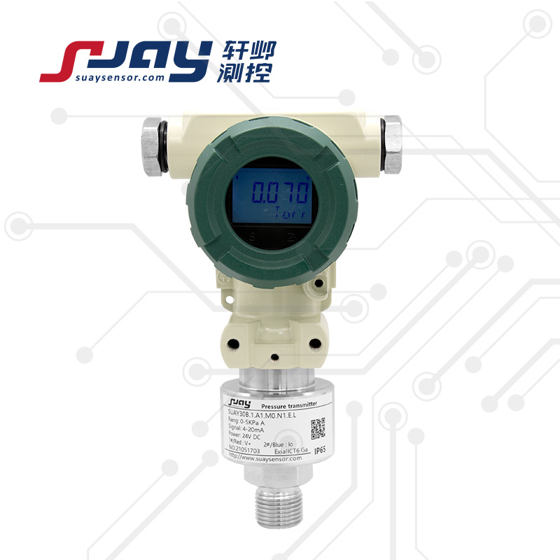 绝压变送器SUAY30采用德国进口的陶瓷电容压力敏感元件,在不大幅度损失输出信号的情况下可将最小量程迁移至0-1Kpa、2K怕、5Kpa、10KPa,辅以特殊、稳定、高输入阻抗的信号处理模块,使其具有优良的综合测量精度,满足真空测量的需要。